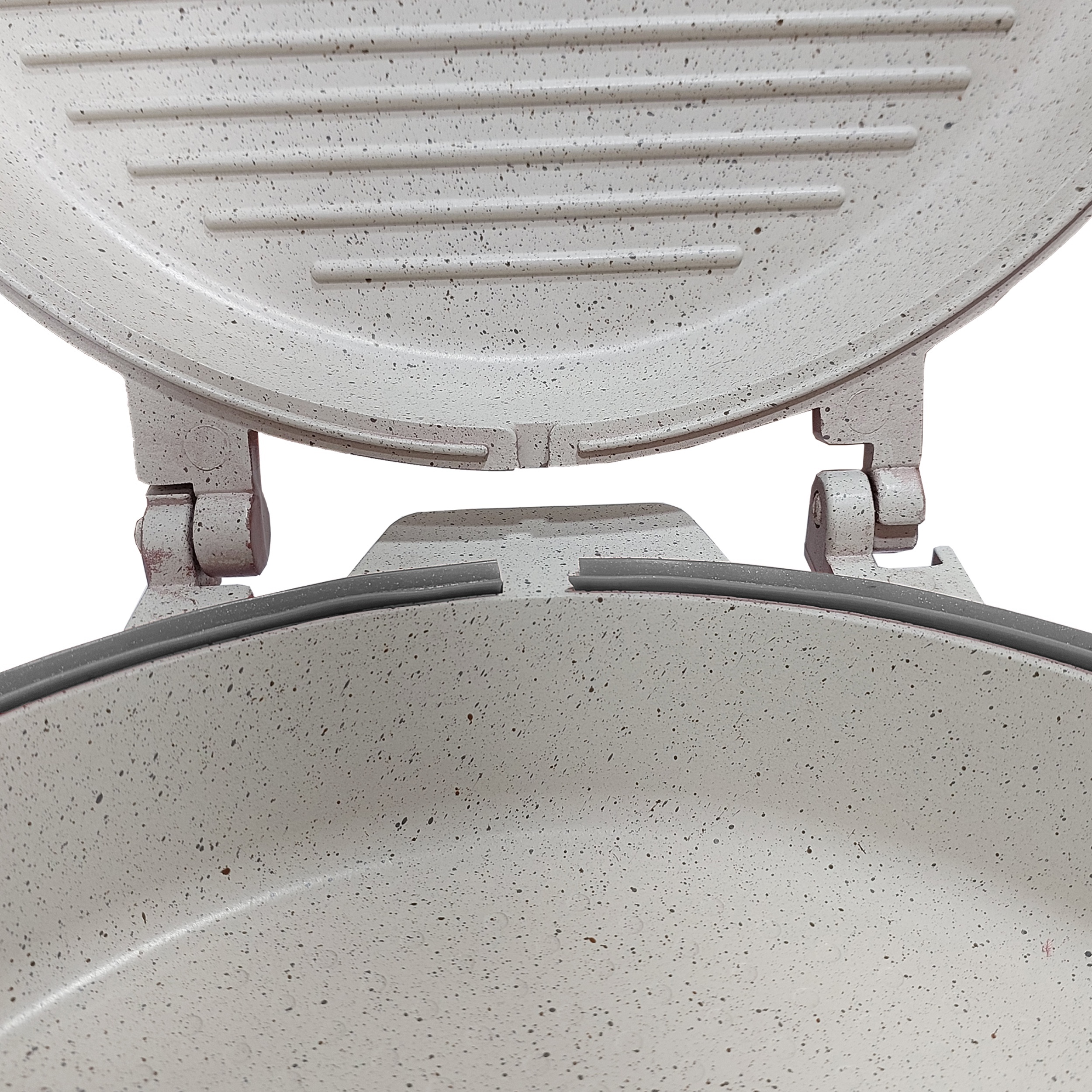 ۲ پارچه (شاملِ ۲ تابه با سایز ۲۸ که از طریق یک لولا (با قابلیّت جداشدن) به هم وصل میشوند)