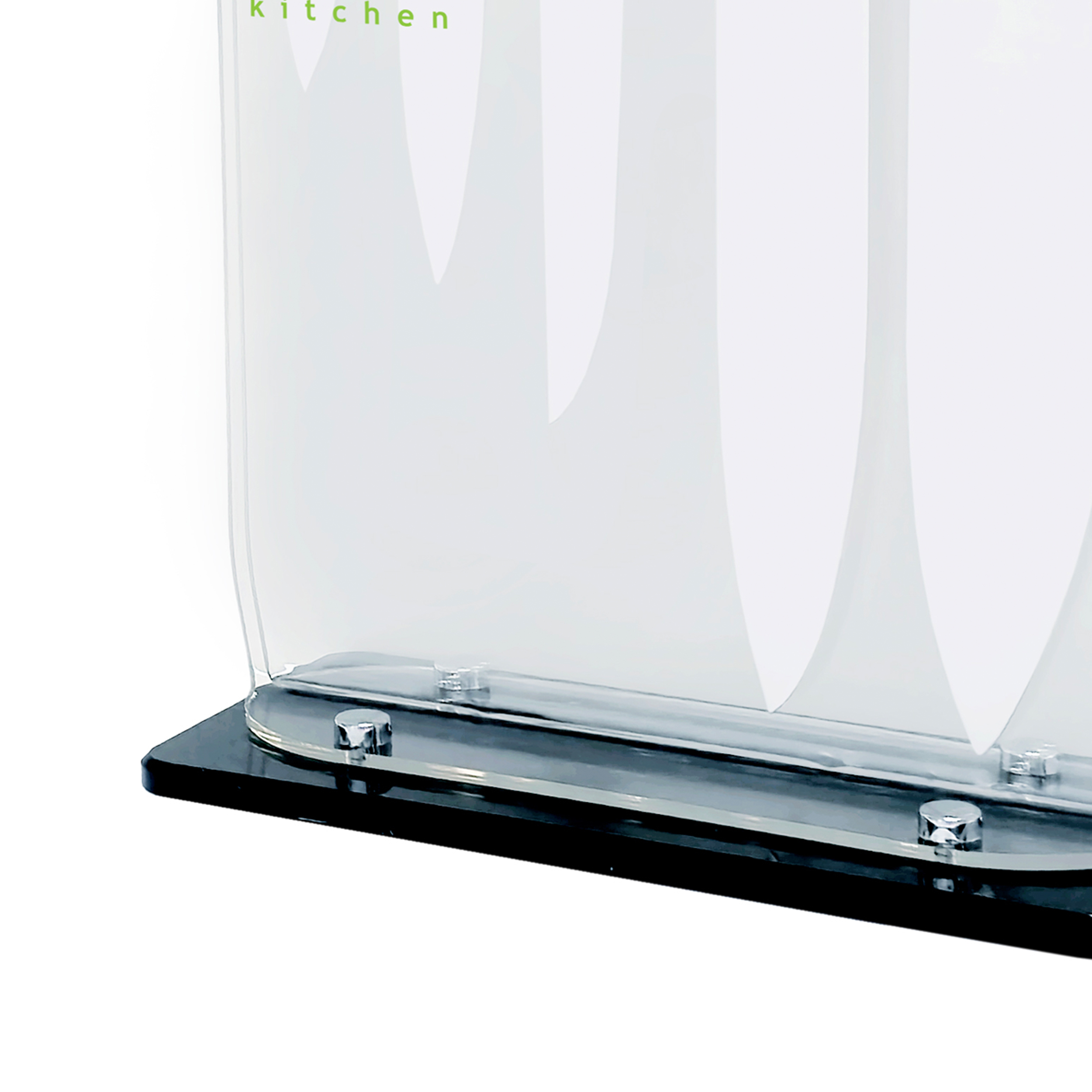 جایگاه (استند) از جنس پلاستیکِ آکریلیک با وزنِ سبک و مقاوم در برابر ضربه و خط‌‌و‌خش