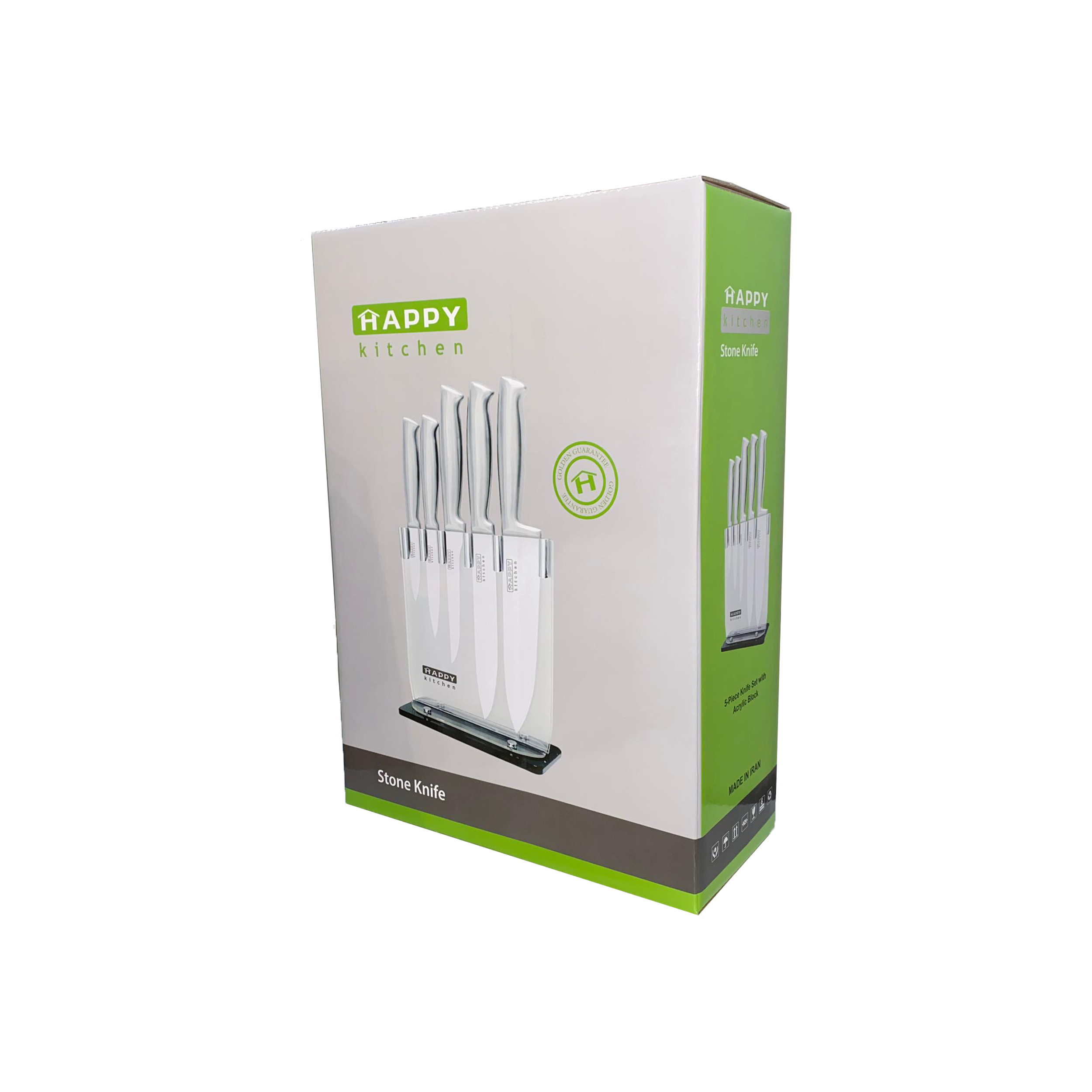 سرویس چاقوی آشپزخانه ۵ پارچه هپی کیچن به همراه استند طرحِ شیشه‌‌ای